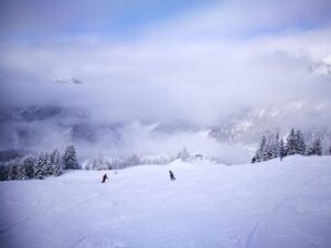 Am 2. Februar 2019 starteten wir pünktlich Richtung Fernpassstraße. Am Allgäuer Tor legten wir eine Pause ein. Als es kurz darauf weiter ging setzte Regen ein, was nichts Gutes versprach. Doch je näher wir Bichlbach kamen wurde der Regen weniger und als wir auf den Parkplatz fuhren, hörte er ganz auf (wenn Engel reisen!). Die vorbestellten Liftkarten waren schnell verteilt und ab ging es zur Almkopfbahn. Oben angekommen, erwarteten uns ca. 20 cm Pulverschnee und fast ungespurte Pisten. Da es die ganze Nacht durchgeschneit hatte, war die Pistenpflege doch etwas zu kurz gekommen. Was für die einen Höchstgenuss bedeutet, war für andere wiederum ein Kampf ums Runterkommen.
