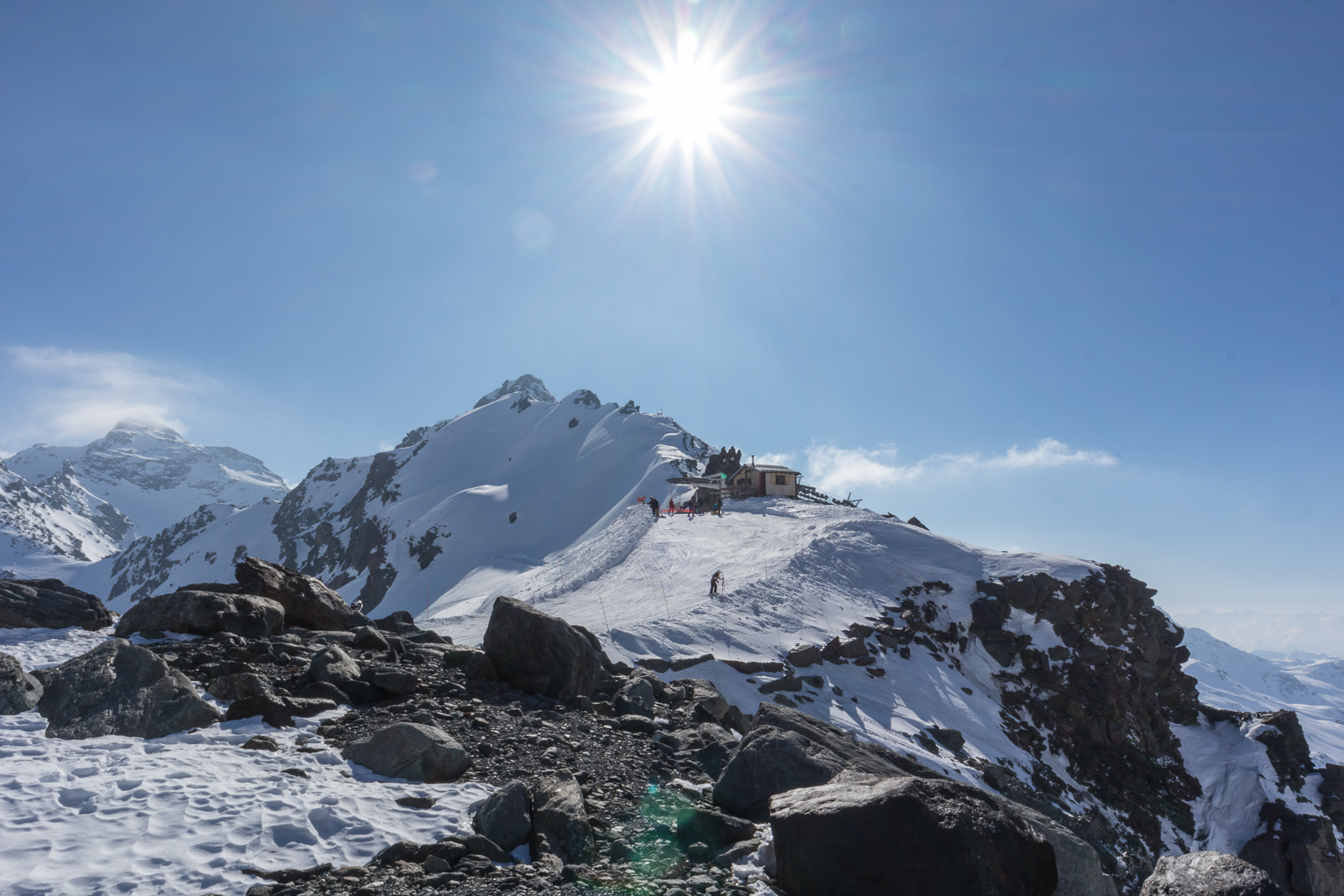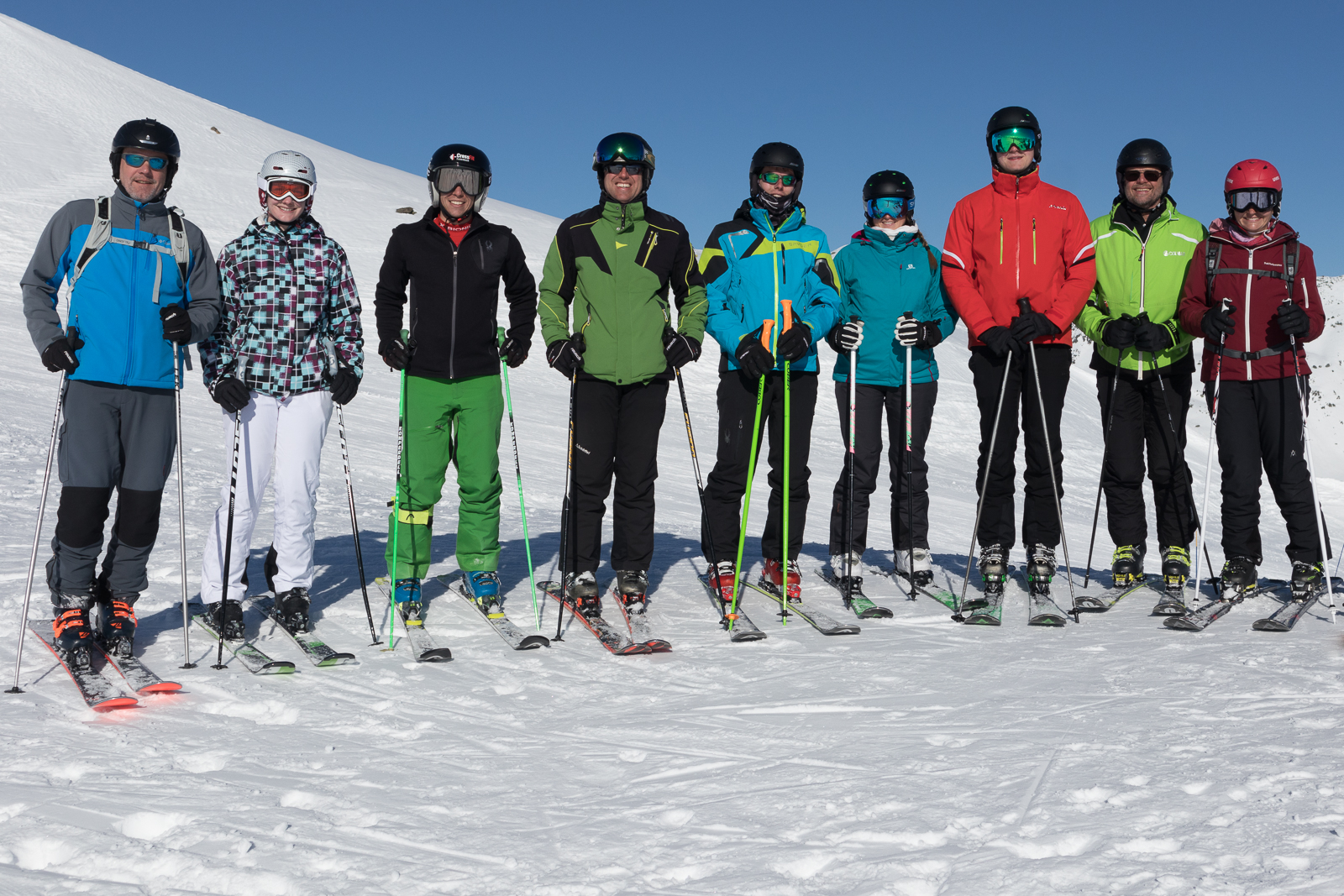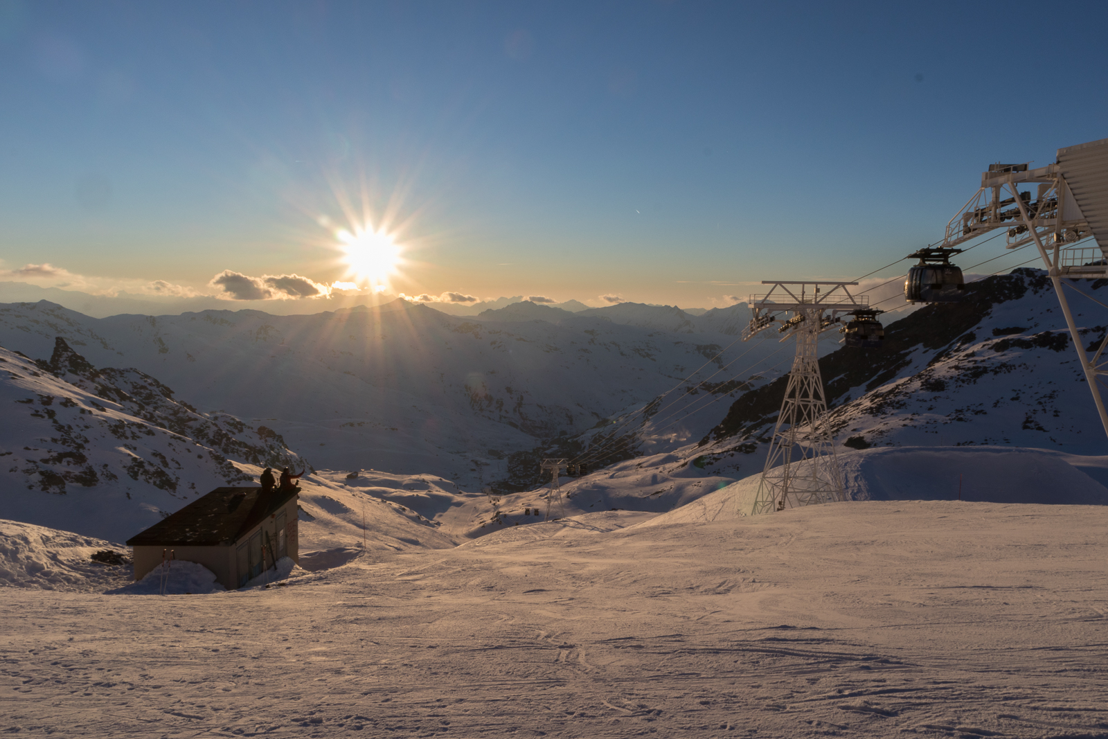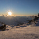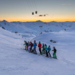 Ein Highlight bildete die Abendfahrt zum Péclet, wo dank verlängerter Liftöffnungszeiten bis 18:30 Uhr Ski gefahren werden konnte. Die Abfahrt von knapp 3.000 m Höhe im letzten Licht der Dämmerung, nachdem zuvor auf der Aussichtsterrasse der Sonnenuntergang genossen werden konnte, wird vielen sicher noch lange in Erinnerung bleiben. Doch auch darüber hinaus gab es wieder allerhand gesellige Aktivitäten, vom gemeinsamen Abendessen mit landestypischen Köstlichkeiten wie Raclette oder Tartiflette über die schon traditionelle Feuerzangenbowle bis hin zur Geburtstagsparty einer Teilnehmerin, die – je nach Termin – in den letzten Jahren ebenfalls zu einem festen Bestandteil der Skiwoche geworden ist.